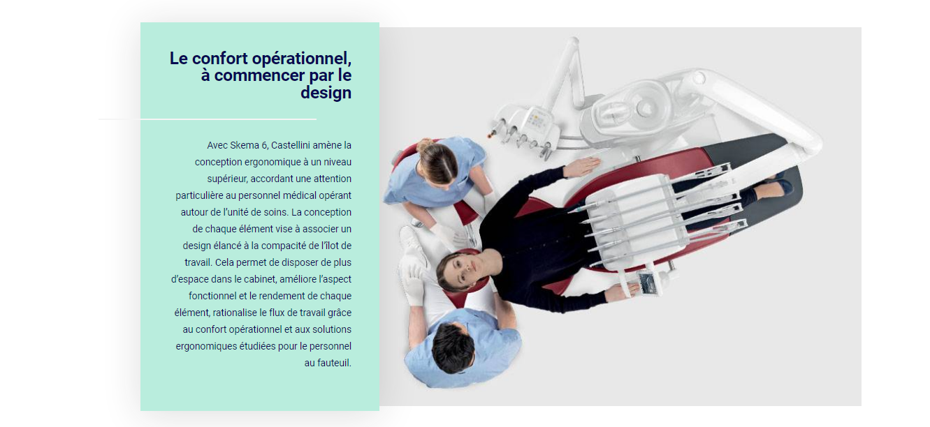 Skema 6 permet au médecin de faire face à toutes les exigences cliniques, même spécialisées, conscient de pouvoir compter sur les toutes dernières technologies alliées à une facilité d’utilisation extraordinaire. Conçu pour les médecins les plus exigeants et polyvalents, Skema 6 offre une ample modularité de configurations afin de garantir un confort opérationnel maximal.